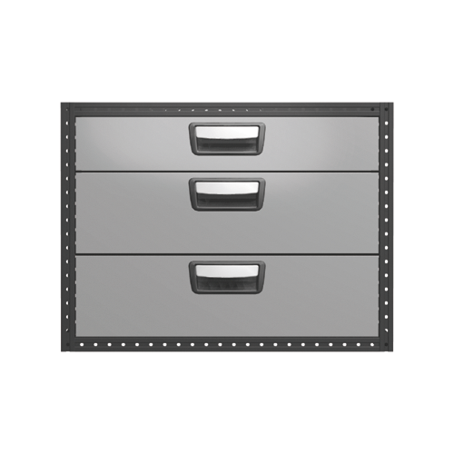 Each drawer is fitted with ball bearing runners as standard, and has a load capacity of 30 kg with a maximum of 100 kg per drawer unit. The drawers are fully extendable and equipped with stoppers. For maximum utility, the drawer unit can be equipped with accessories such as foam plastic liners, plastic inserts and dividers. To help optimize the weight, cover panels and tool boards are optional.