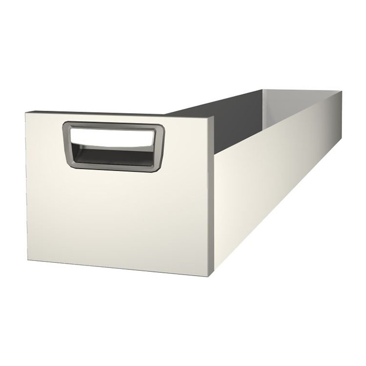 Robust ekstra lang skuffe til montering i en skuffeenhedsramme. Skufferne i aluminium er som standard udstyret med kuglelejer, og blandingen af faste og fleksible lejer gør skufferne både stabile og nemme at betjene.