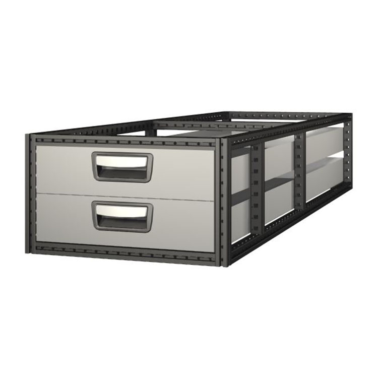 De ekstra lange skuffeenheder har en ramme af ultrastærkt stål og skuffer af aluminium. Skufferne er som standard udstyret med kuglelejer, og blandingen af faste og fleksible lejer gør dem både stabile og nemme at betjene.