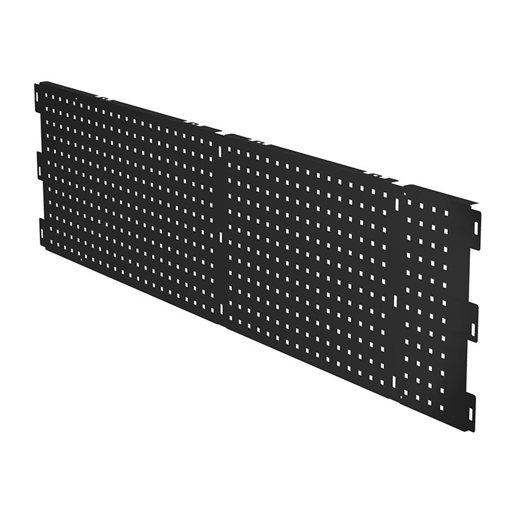 Værktøjsbræt til ekstra lang skuffeenhed. Det beskytter skuffen og giver samtidig et flot design. Værktøjsbrættet er stanset med 9 mm huller ved 34 mm mellemrum, hvilket gør det muligt at fastgøre værktøjsholdere og andet tilbehør. Installeret ved hjælp af skruer (medfølger ikke).