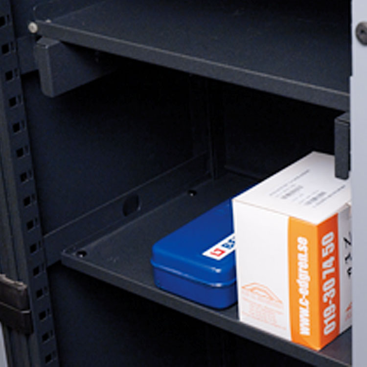 Fixed shelf for vertical locker.