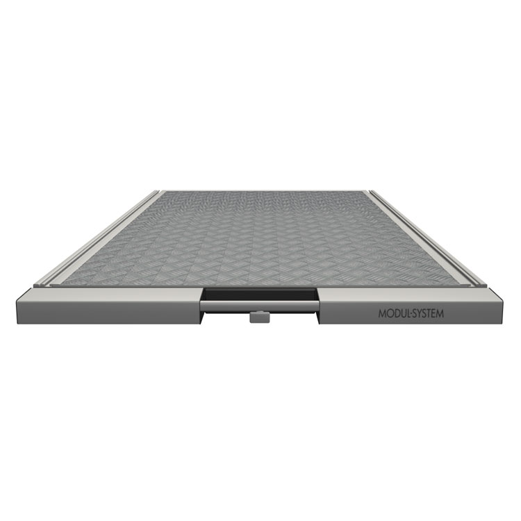 Platformens integrerede T-skinner kan bruges til at fastgøre reolprodukter eller anden last.