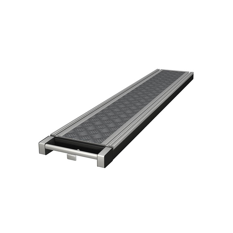 Platformens integrerede T-skinner kan bruges til at fastgøre reolprodukter eller anden last.