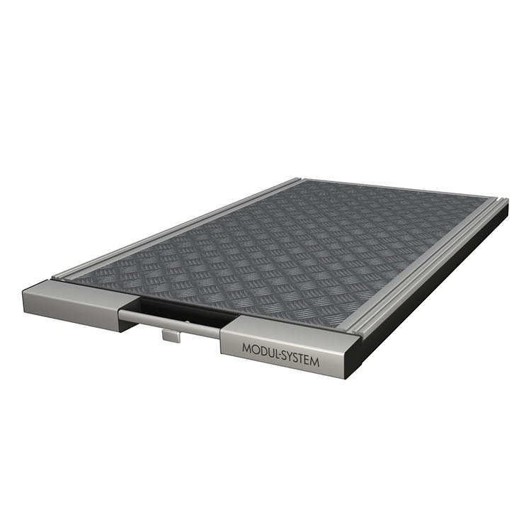 Platformens integrerede T-skinner kan bruges til at fastgøre reolprodukter eller anden last.