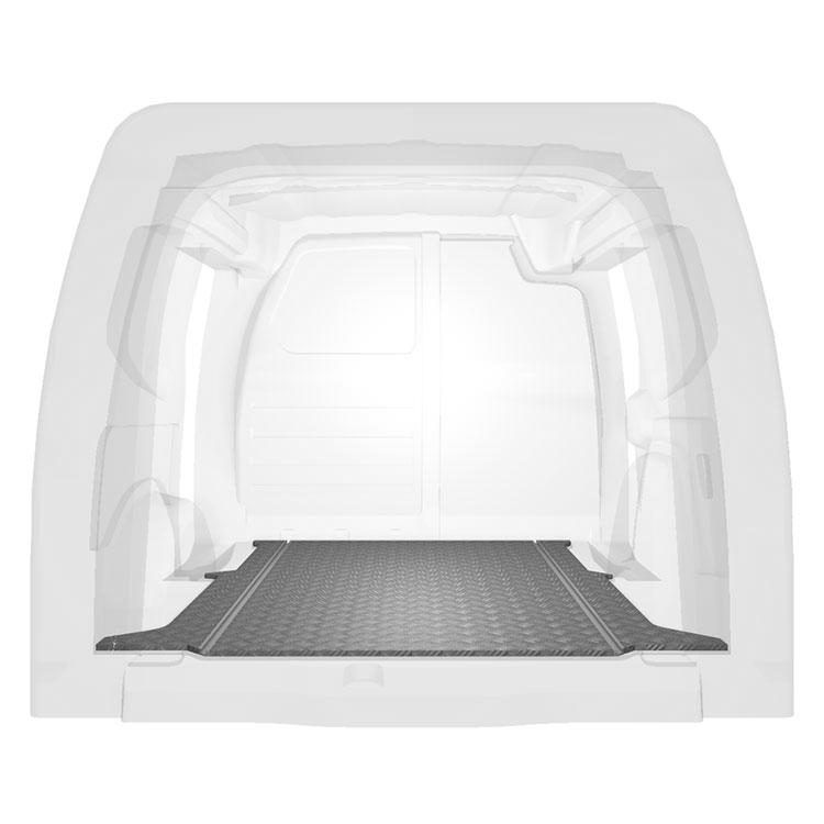 Let og robust XL-gulv til en Mercedes Citan / Renault Kangoo 21- med skridsikker aluminiumsplade og lastskinner (langsgående) for hurtig og sikker installation af indretningssystemer og andet tilbehør.