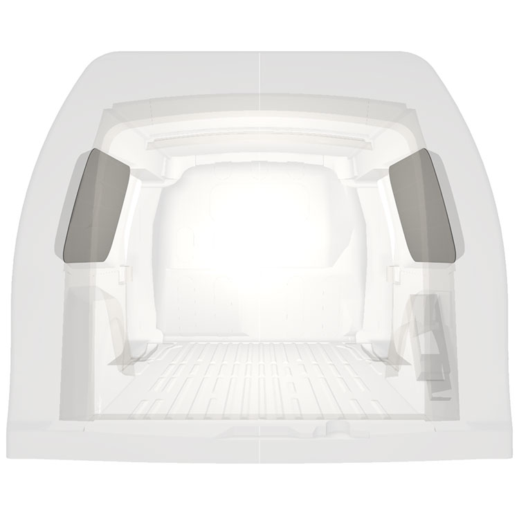 Let færdiglavet beklædning til de indvendige vægge af en Mercedes Citan / Renault Kangoo ned dobbelte sidedøre. Beklædningen skaber et lyst og behageligt arbejdsmiljø og er nem at rengøre.