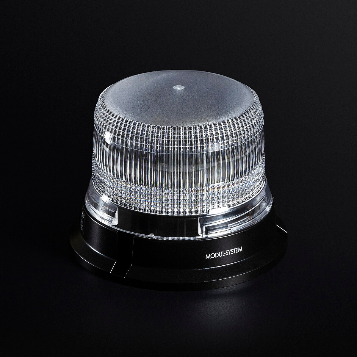 LED-blinklampe i høj kvalitet med trepunktsmontering på taget af køretøjet. Blinklampeadaptere (fås separat) muliggør etpunktsmontering eller montering på tagstativ.