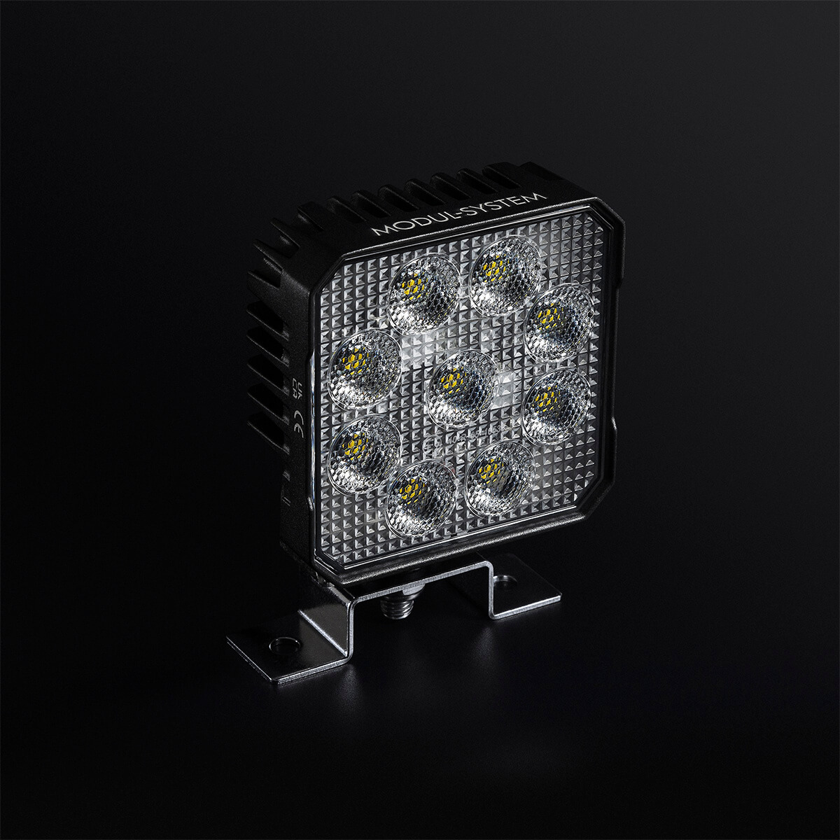 Work light with 9 individual LEDs, which will provide a white light. It comes with a pre-mounted bracket for easy installation to the vehicle. Thanks to IP67 classification, the light is also suitable for outdoor use. The product is E marked.