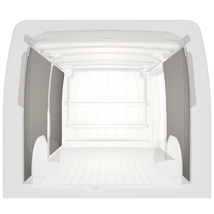 Let komplet beklædning til de indvendige vægge i en Citroën Jumper / Peugeot Boxer / Fiat Ducato med en sidedør til højre.Beklædningen skaber et lyst og behageligt arbejdsmiljø og er nem at rengøre.