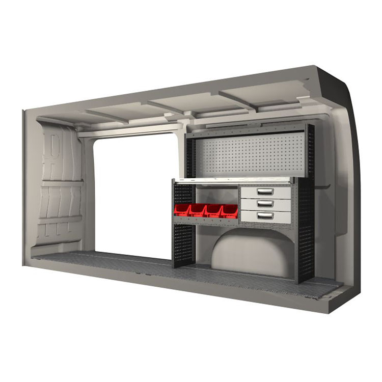 Indretningsforslaget er specielt designet til at passe valgte bilmodel perfekt. For øget funktionalitet og reduceret støj under kørslen er alle hylder udstyret med gummimåtter og skuffer med skum. Monteringssæt medfølger.