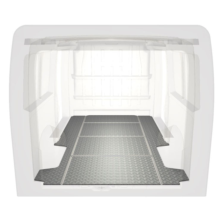 Lette og robuste gulve til varebiler med tværgående skinner til en Citroën Jumper / Peugeot Boxer / Fiat Ducato med skridsikker aluminiumsplade og lastskinner (langsgående og tværgående) for hurtig og sikker installation af indretningssystemer og andet tilbehør.