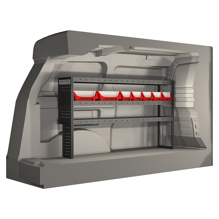 The racking has been specially designed to ensure the optimum fit to the vehicle, as well as the best possible functionality and safety. It has been developed for professional use, is flexible and is intended for service jobs in various types of business. All shelves are equipped with rubber mats, and all drawers with foam plastic liners. Assembly material is included.