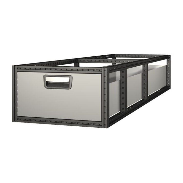 De ekstra lange skuffeenheder har en ramme af ultrastærkt stål og skuffer af aluminium. Skufferne er som standard udstyret med kuglelejer, og blandingen af faste og fleksible lejer gør dem både stabile og nemme at betjene.